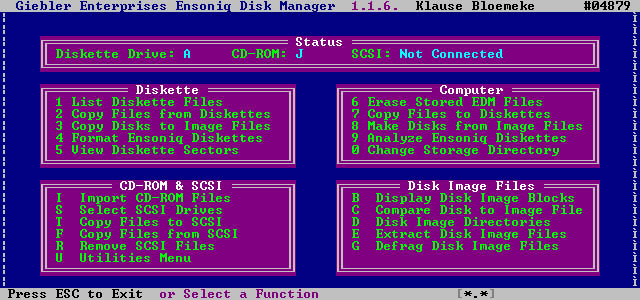 SoftwareTestbericht zur TS10/12-Software der Firma GieblerDie Software besteht aus zwei Programmen: EDM.EXE (Ensoniq Disk Manager) liest und schreibt einzelne Files von Ensoniq-Disketten. Kostet einzeln $34.95, im Bündel mit TS10SMF.EXE $54.95